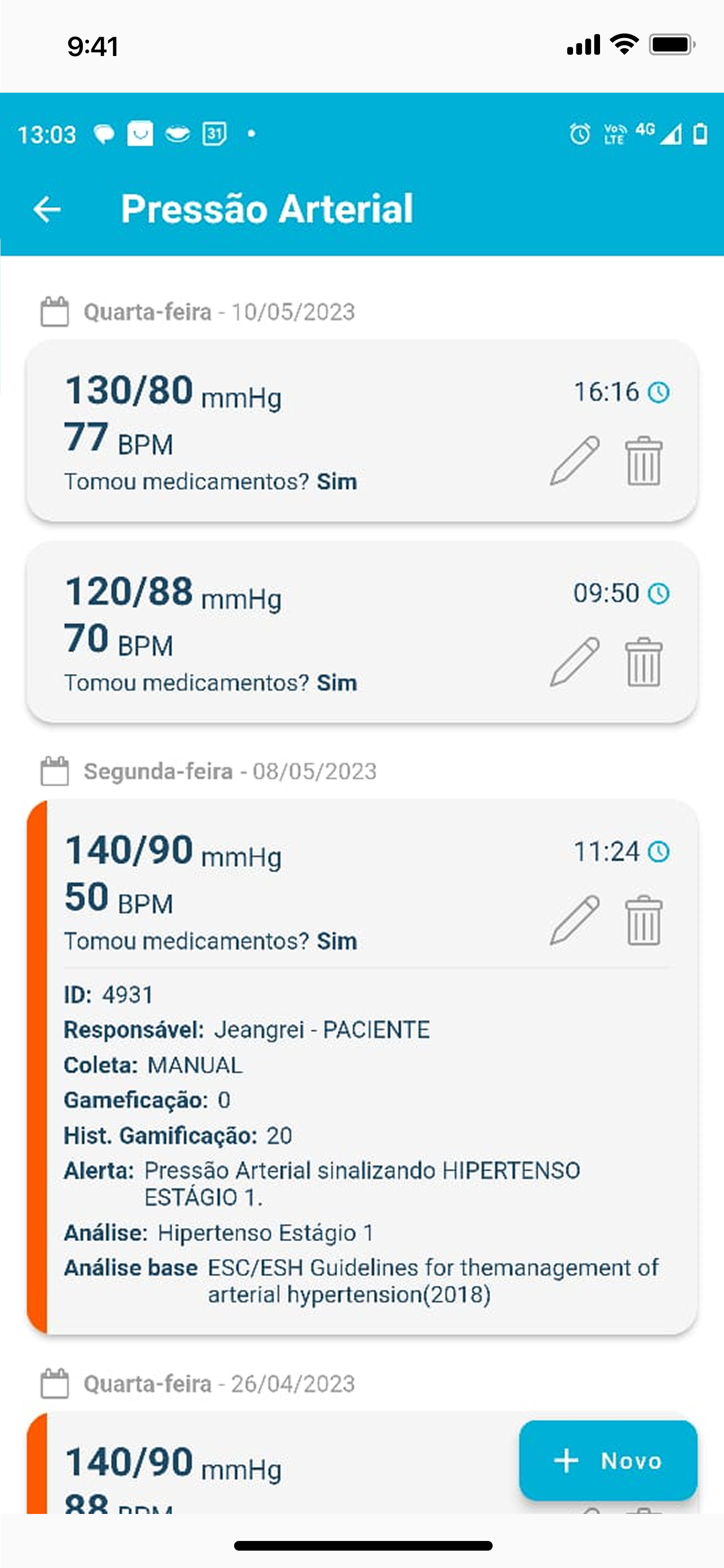 Registrar parâmetros clínicos e atividades (estilo de vida) dentro do seu contexto.